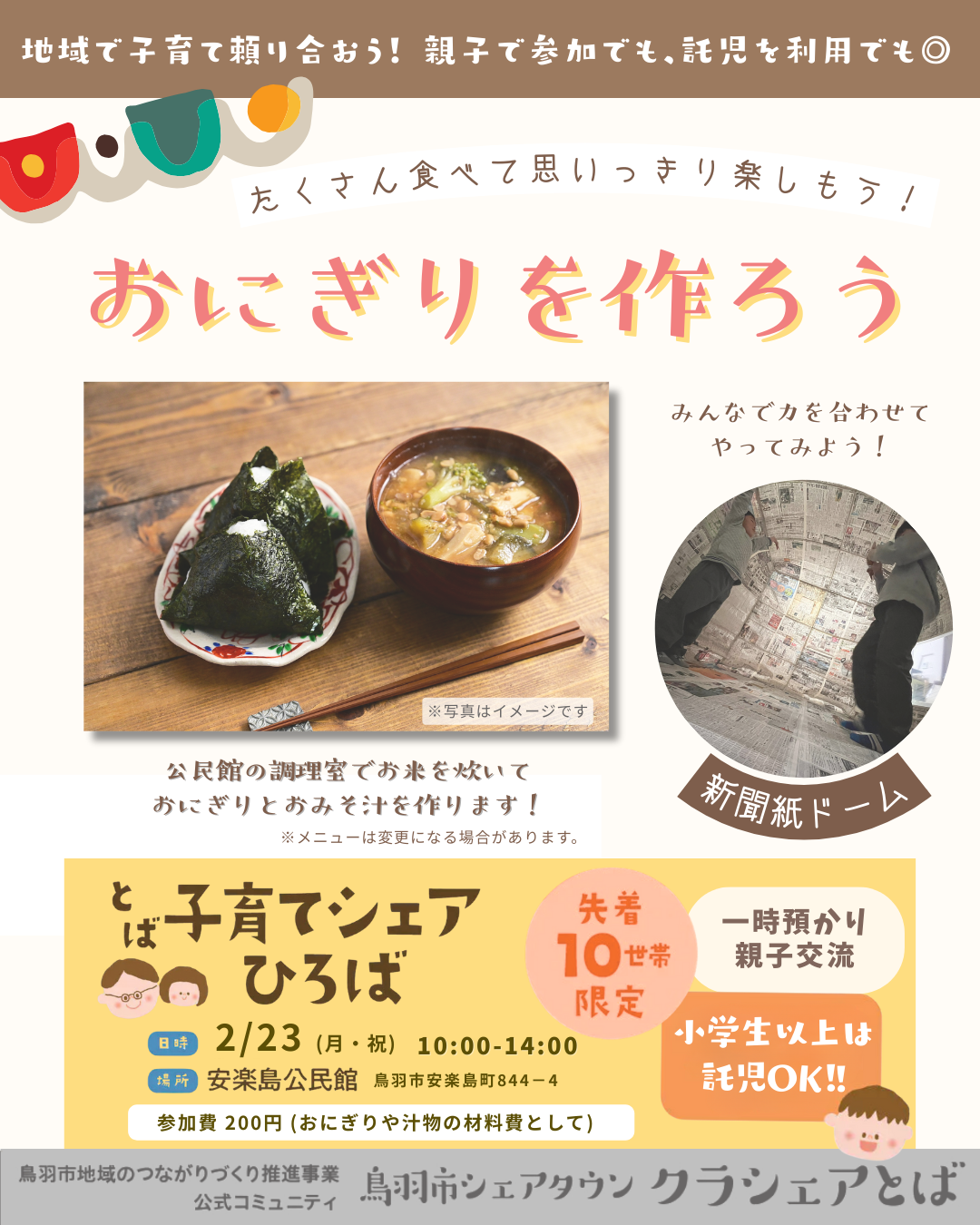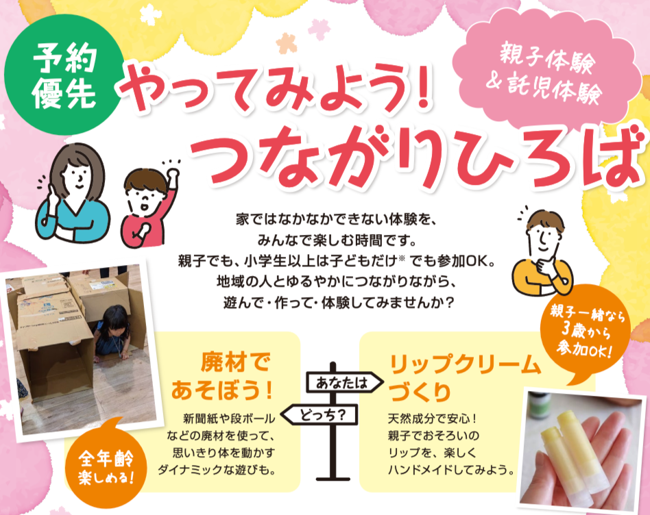 大小さまざまな交流イベントやセミナーの場を通じて、気の合う仲間を見つけたり、生活や子育てに役立つコトを、親子も夫婦もシニアも、みんなが学べる場。