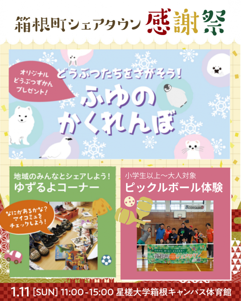 箱根町シェアタウンが日ごろの感謝をこめて、星槎大学 箱根キャンパスのご協力のもと「感謝祭」を開催します。箱根で暮らす皆さま、ぜひお立ち寄りください。