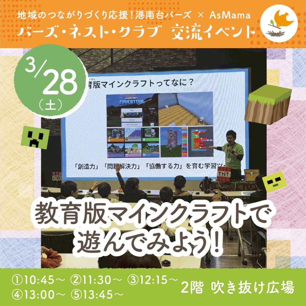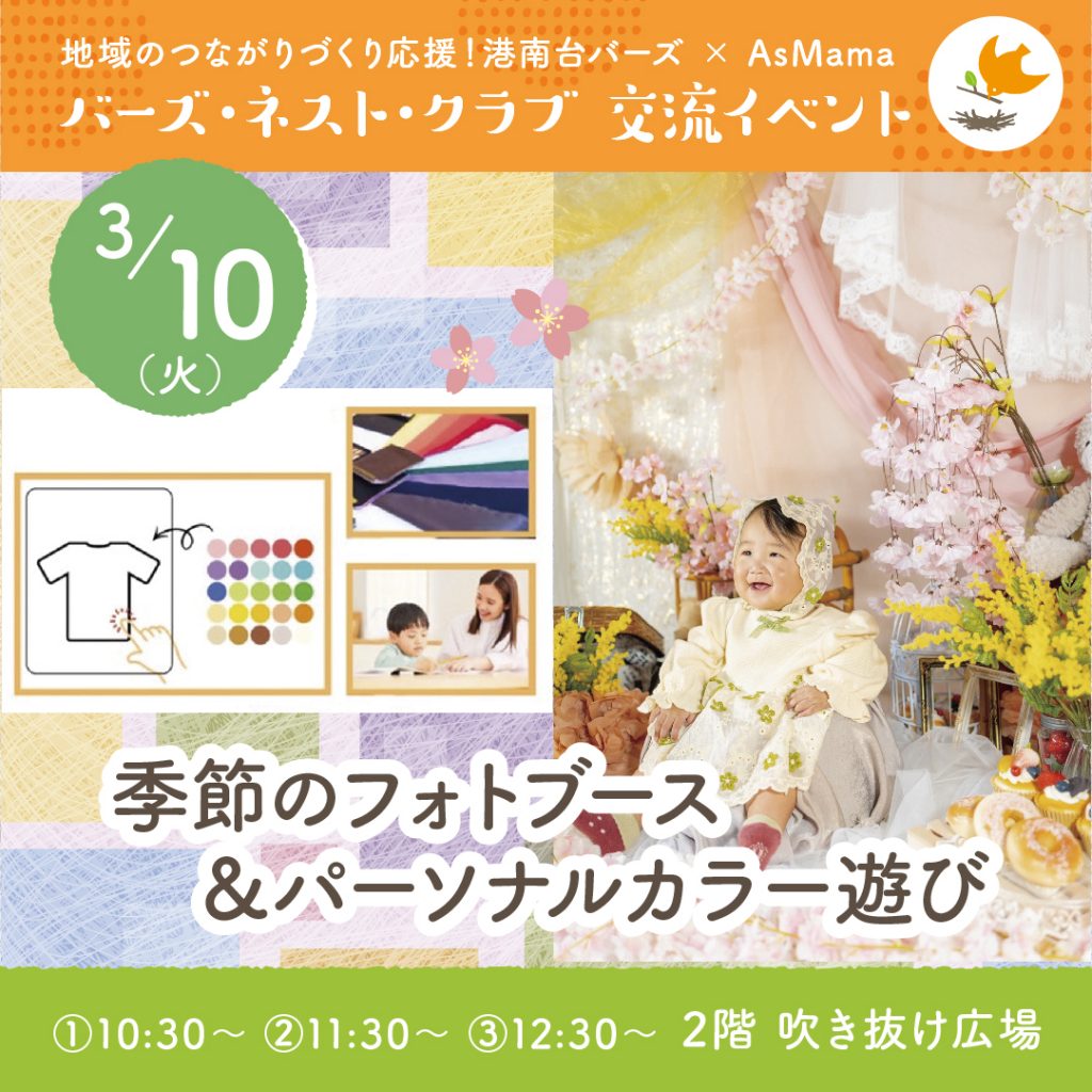 地域コミュニティづくりのAsMamaと、港南台バーズがコラボレーション。港南台バーズを中心とした地域の新しい未来と交流を育む「巣(NEST)」のような場を、リアルとオンラインで紡ぐ「人と人とのつながり」で実現します。地域の人と出会い、なかよくなれるコミュニティ「バーズ・ネスト・クラブ」の交流イベントを、港南台バーズで毎月開催中。ぜひ「つながり」をつくりに来てください!