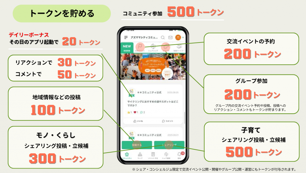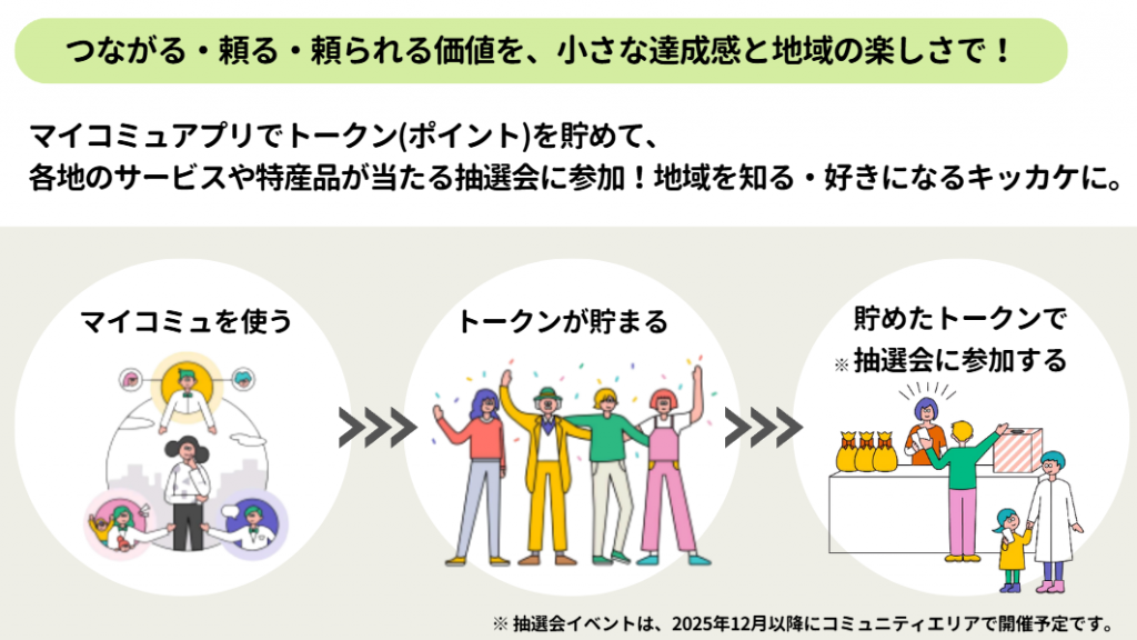 - 貯めたトークンで、各地のサービスや特産品が当たる抽選会に参加可能