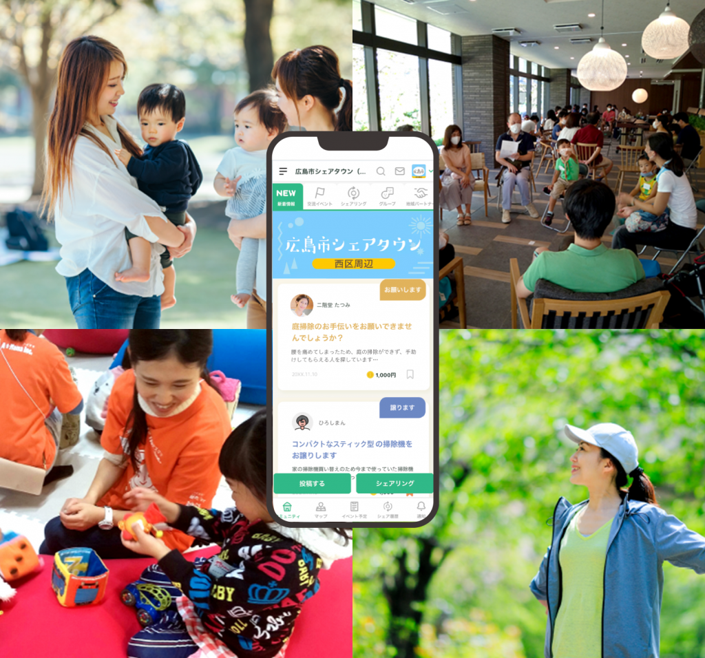 地域住民の皆さんがお互いに知り合える交流機会づくりと、「マイコミュ」アプリを通じて、地域情報やモノ、暮らし、子育てを気軽に頼り合える地域をつくります。
