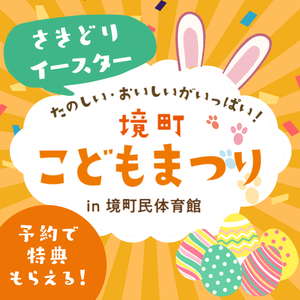 マイコミュアプリ「境町子育てシェアタウン」からの事前予約で、イースターワークショップ無料の特典をGETしてね🎁 ばんどう太郎グループ商品券ほか豪華景品が当たる大抽選会も、ご家族で楽しんで!