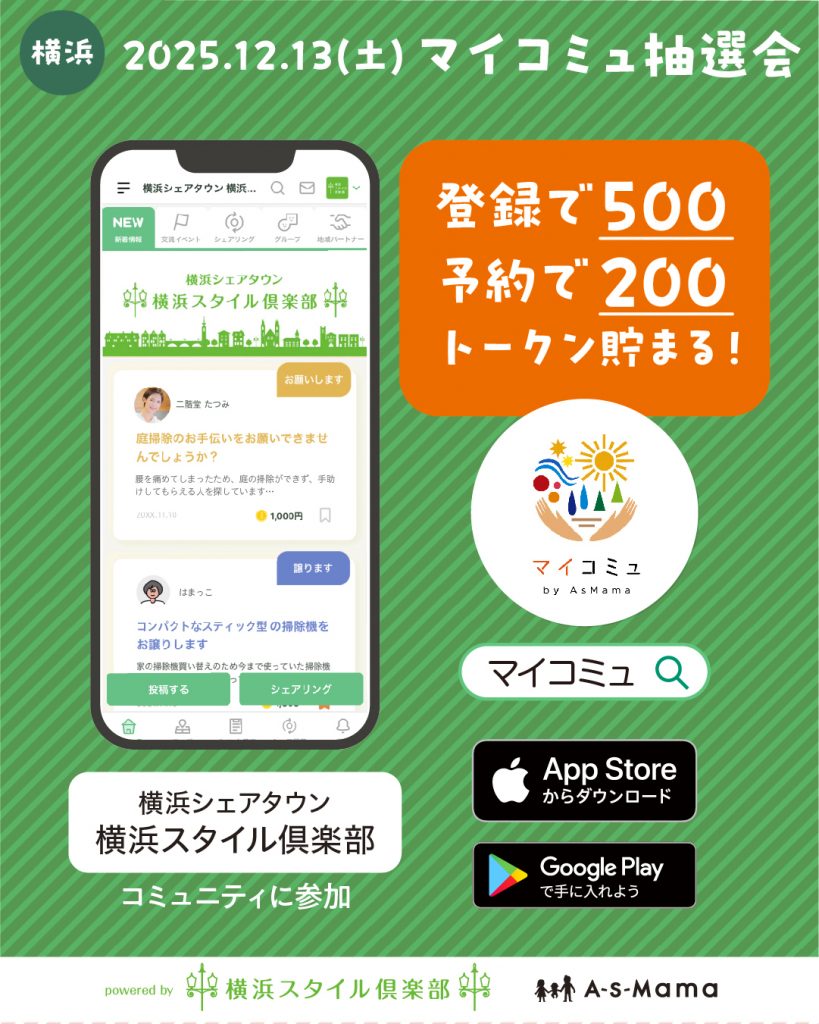 毎日のログインやいいね・コメントなどで貯まるトークンを活用して、横浜のいいもの当たる『マイコミュ抽選会』を、開催いたします!